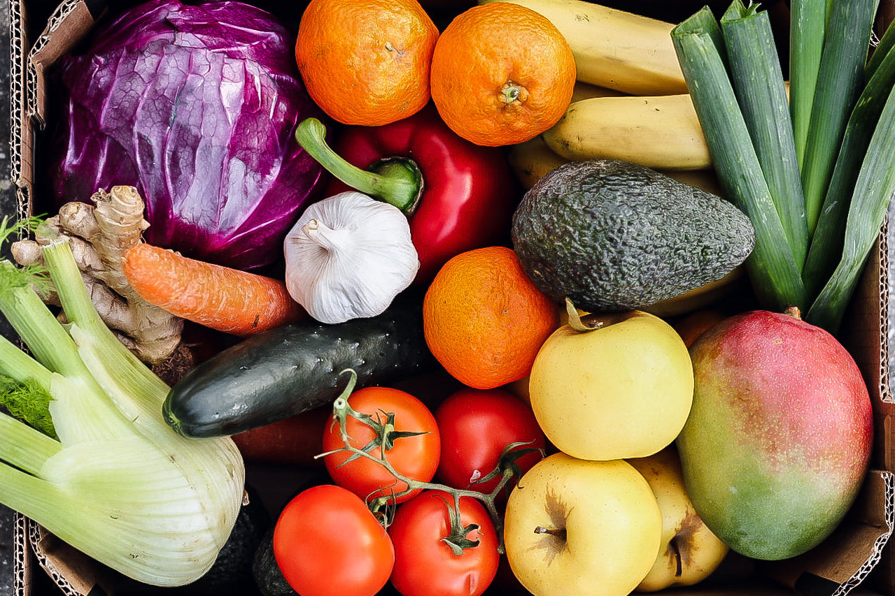 Examples of vegetables you might find: Carrots, bell peppers, sweet potatoes, leeks, tomatoes, avocado, cucumbers, and more.